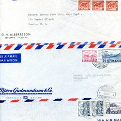 Island 5 forældede kuverter med god frankering, mest fra 1950'erne, bl.a. nr. 312