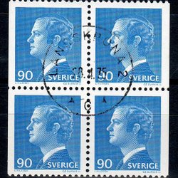 F.918BB, 90 øre Carl XVI Gustaf, type I, LANDSKRONA 28-4-75 [M/SK], blok af 4, brugt