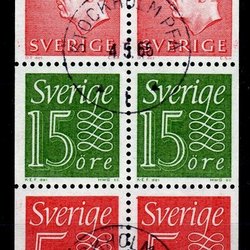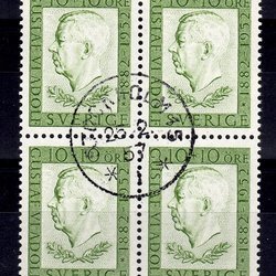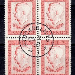 F.420SX3 etc., 25 øre Gustaf VI Adolf type III, stemplet blok