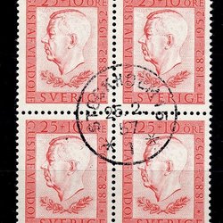 F.443BB, 25+10 øre Gustaf VI Adolf 70 år, STOCKHOLM 25-2-57, blok af 4