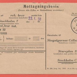 Modtagelsesbevis MORA POSTOMB 2 28.1.56 Bergkarlås