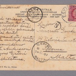 Sverige. Oscar II postkort til Malta 12/11 1907..