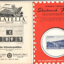 3 gamle frimærketidsskrifter + skrift Frimärket 125 år