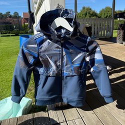 Sort og hvid skaljakke, størrelse 128