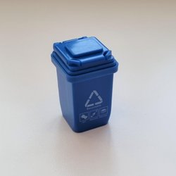 1 skraldespand / skraldespand. Miniature til dukkehuse, kighuller, togskinner osv. (blå)