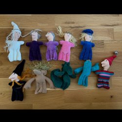 Fingerdukker hjemmelavede/håndlavede. 10 stk.