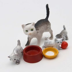 Retro vintage katte kat mor unger skål mad dyr til Lundby dukkehus