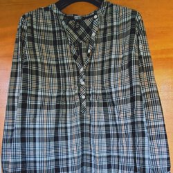 Langærmet ternet tunika med knaplukning, MAMA str. L H&M