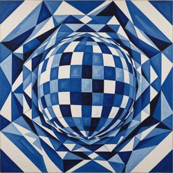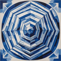 Unikt Blått och vit art print med passepartout och ram
