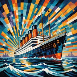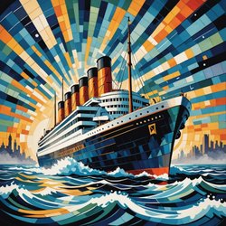 Unikt Ocean Liner Art Deco I art print med passepartout og ramme