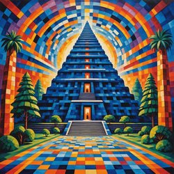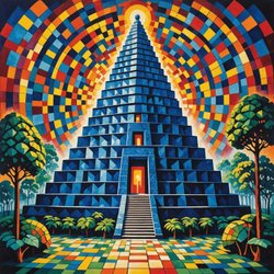 Unikt Maya temple art print med passepartout och ram Sci-Fi