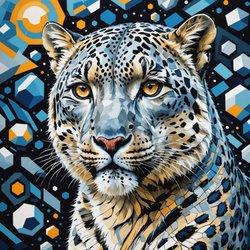Unikt Snöleopard art print med passepartout og ramme