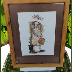 Holly Hobbie maleri 70'er glaseret og indrammet træramme Pæn stand