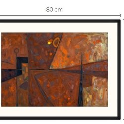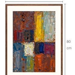 Abstrakt kunsttryk med passepartout og ramme 60 cm x 80 cm