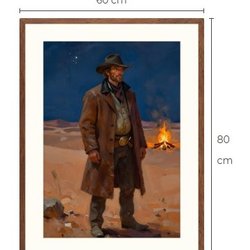 Cowboy kunsttryk med passepartout og ramme 60 cm x 80 cm