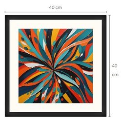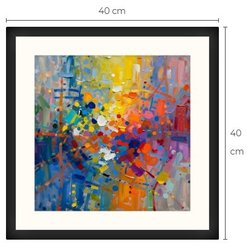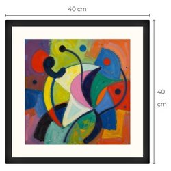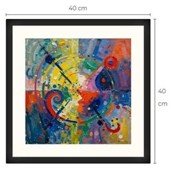 Abstrakt kunsttryk med passepartout og ramme 40 cm x 40 cm