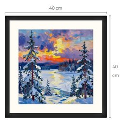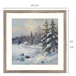 Vinterlandskap art print med passepartout og ramme 40 cm x 40 cm