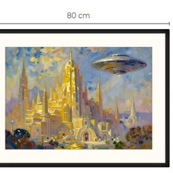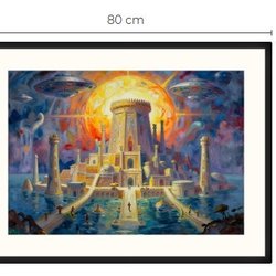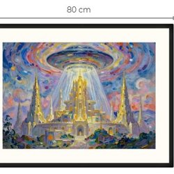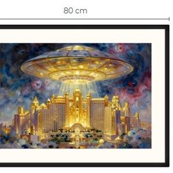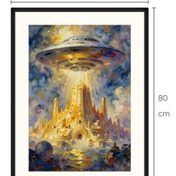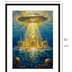 Atlantis og UFO art print med passepartout og ramme 60 cm x 80 cm