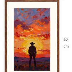 Cowboy kunsttryk med passepartout og ramme 40 cm x 60 cm