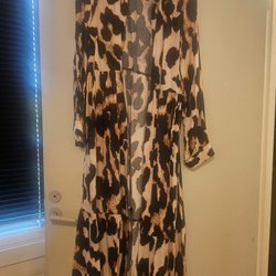 HÖSTKlänning, leopardmønster, draperet, wrap-stil på overdelen. Str. 34. NA KD