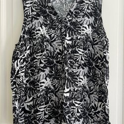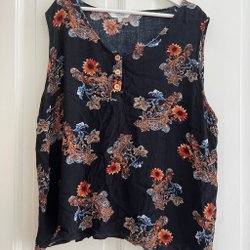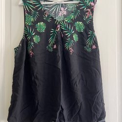 Sort smuk tanktop med blomstermønster, størrelse 5XL 52-54