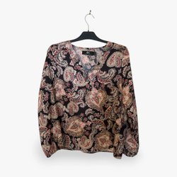 Superfin Blå, flerfarvet bluse str. M