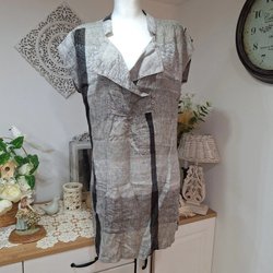 Z BIZ Klänning XL Linne Boho V-hals Lang Skjorte Tunika Bekvem