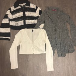 Tre cardigans sort hvid grå Indiska H&M str. M