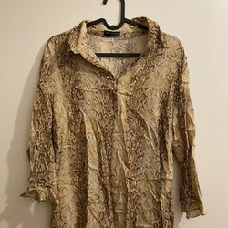 Linne Brunbeige mønstret KappAhl bluse L FRAGTFRIT
