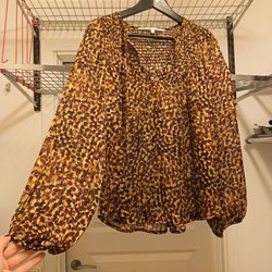 Lindex leopardmønstret beige/brun bluse/top, størrelse S