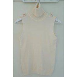 Yannick CX vit ärmlös polo i ull / linne bla, dam, benvit, storlek S