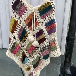 Flerfarvet vintage poncho strikket og hæklet
