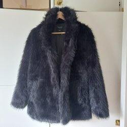 Tiger of Sweden Jeans sort fake pelsjakke, størrelse SMALL