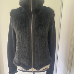100 % uld + 100 % mink P.A.R.O.S.H. sort jakke, størrelse L