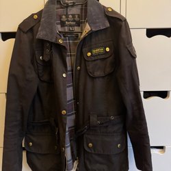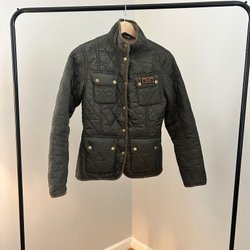 Barbour sort jakke med bælte, størrelse 38