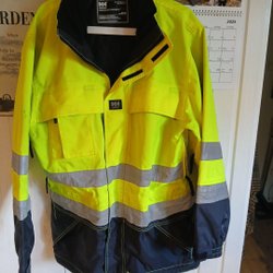 Helly Hansen gul, marineblå jakke, størrelse M