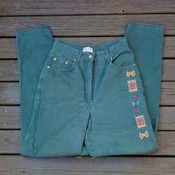 Retro/vintage: Gröna jeans med tufft broderi och läderdetaljer, Italy Amata D