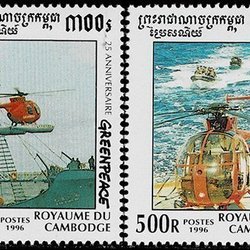 CAMBODIA 1996 Mi 1658-1661 HELIKOPTERE GREENPEACE 25 ÅR **