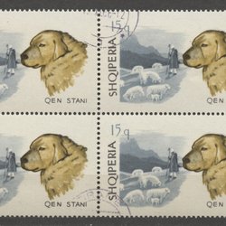 ALBANIEN - "HUNDAR" - GAMMALT 4-BLOCK - STÄMPLAT!!
