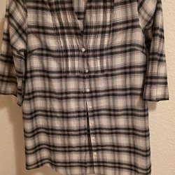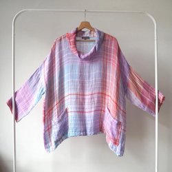 SAHARA linen oversized cowl neck blouse plaid blus tunika rutig lagenlook M L