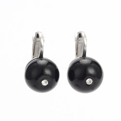Vintage Clips øreringe med 10 mm sorte glasperler og krystalhvid CZ