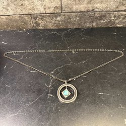 vintagehalskæde i tin med en turkis farvet sten-1972