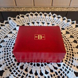 Vintage smykkeskrin. M broderet ryg.