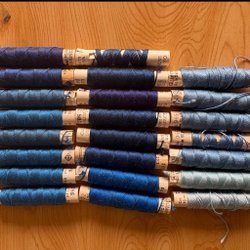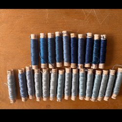 19 ældre trådruller i diverse farver.
