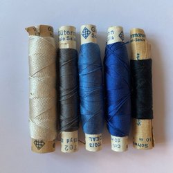 Parti trådruller. Bomuld blå grønne toner Retro