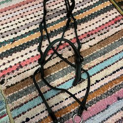 Tøjler i læder og tekstil, størrelse Full