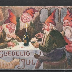 Norge. Julekort med Nisser spiller Kort .. Sign. SK