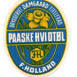 Ældre Dansk Øletiket Bryggeriet Damgaard Fjellerad - Paaske Hvidtøl