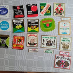 Vara. Starköl, vichyvand, O-cola, kalas-must. 4 stk. etiketter