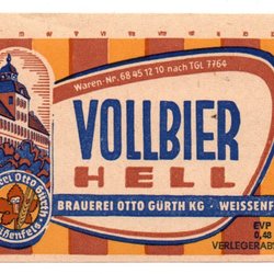 Ældre Tysk Øletiket Brauerei Otto Gürth KG Weissenfels - Vollbier Hell